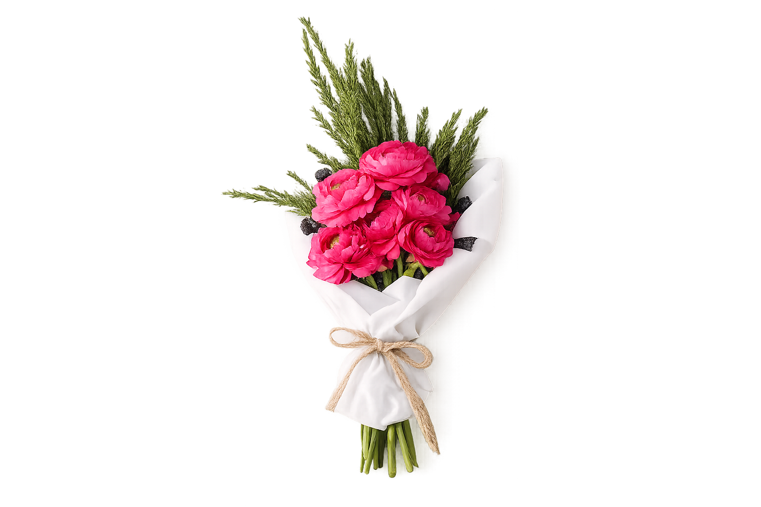 Μια εντυπωσιακή ανθοδέσμη με πλούσια ροζ και φούξια άνθη, δεμένη σε λευκό κομψό περιτύλιγμα και διακοσμημένη με φυσική κορδέλα. Η σύνθεση συνδυάζει ζωηρές αποχρώσεις με λεπτό πράσινο φύλλωμα, δημιουργώντας ένα αποτέλεσμα ρομαντικό, φωτεινό και ιδιαίτερα καλαίσθητο. Είναι ιδανική για δώρο γενεθλίων, επέτειο, ευχές ή για κάθε περίσταση όπου θέλετε να προσφέρετε κάτι κομψό και ξεχωριστό. Η ανθοδέσμη ξεχωρίζει για την ένταση των χρωμάτων της και τη φροντισμένη, χειροποίητη αισθητική της.